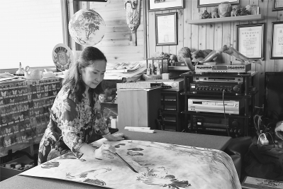 台湾画家许金叶在作画。